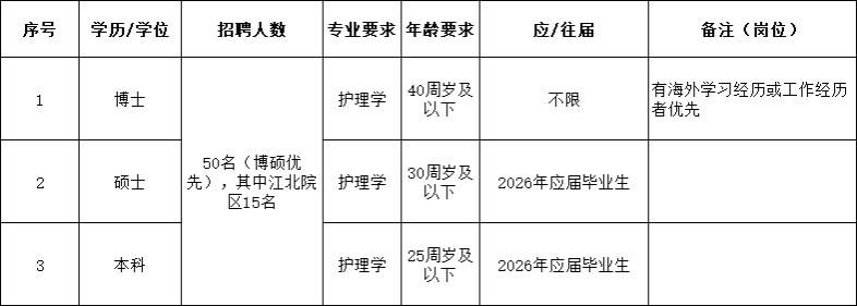 ? ? 現(xiàn)將我院2026年護(hù)理崗位招聘事項(xiàng)公告如下: